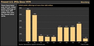 See this article on Bloomberg, entitled Fewest US IPOs Since 1979 Mean Pent-Up Demand.